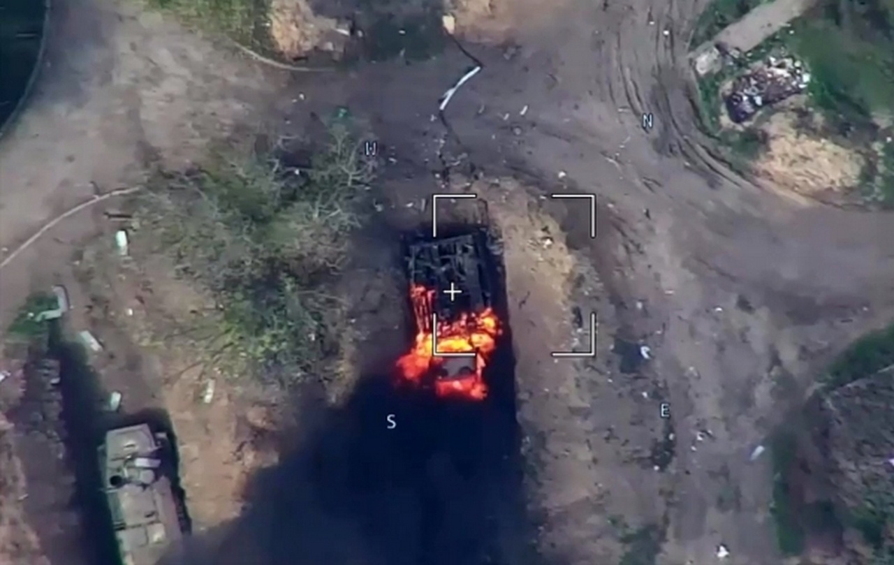 Применение модернизированного барражирующего боеприпаса «Ланцет» против военной техники ВСУ в зоне проведения спецоперации.
