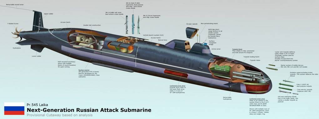 Концептуальное изображение атомной подводной лодки 5-го поколения проекта 545 «Хаски».