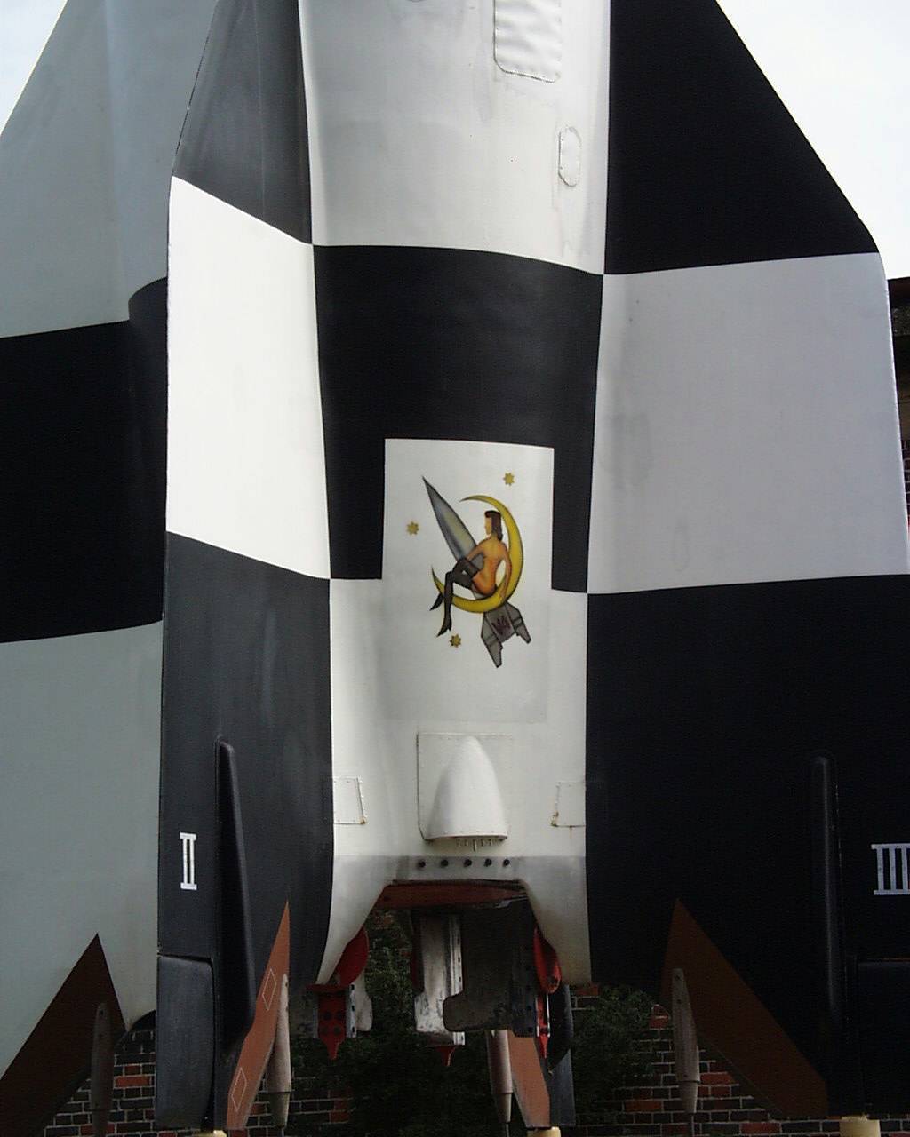 Картинка из фильма «Девушка на Луне», нанесённая на основание ракеты (копия первой ракеты «Фау-2» в музее Пенемюнде)