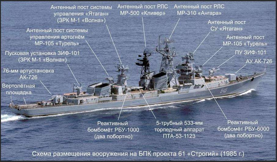 К 1991 году БПК проекта 61 считались мореходным, надежным и скоростным (35,5 узлов полного хода) кораблем.. совершенно не пригодным в качестве охотника за подводными лодками противника. Действительно, если в момент формирования оперативно-технического задания дальность обнаружения подводной лодки противника встроенной ГАС и дальность ее поражения противолодочной торпедой семейства СЭТ в 15 км была вполне приемлемой, то к 1991 году БПК и подлодки вероятного противника поменялись ролями – теперь подводная лодка могла легко и обнаружить, и поразить БПК, находясь за как пределами радиуса действия его гидроакустики, так и за пределами средств его поражения.