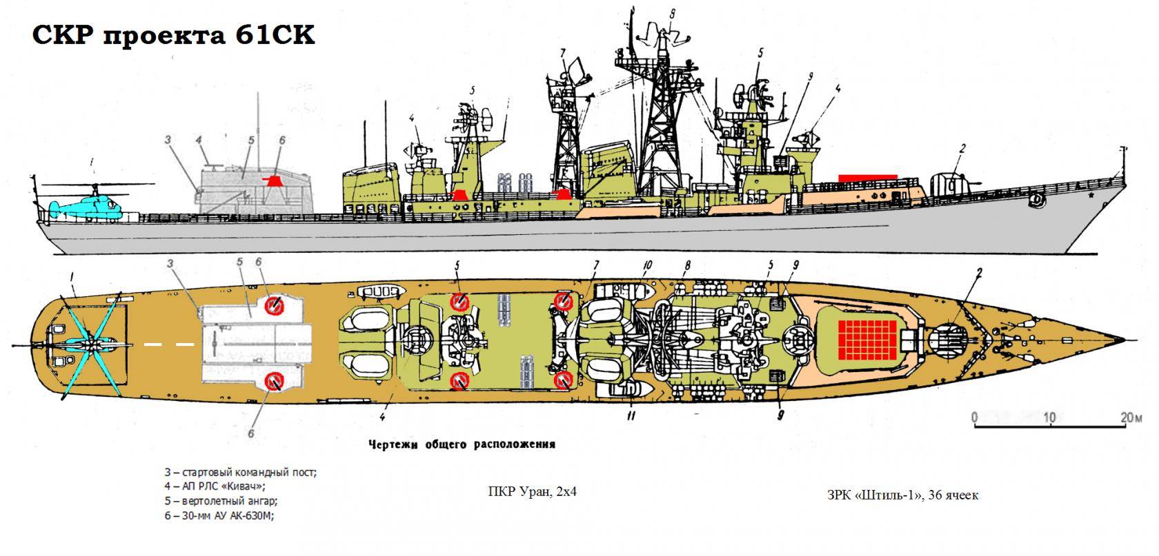 Одновременно с этим, и внешнеполитические амбиции, и экономические возможности Российской Федерации резко упали в сравнении со временами СССР и ни потребности , ни средств перевооружить БПК проекта 61 не находилось. Над кораблями нависла угроза разоружения и резки на металл.