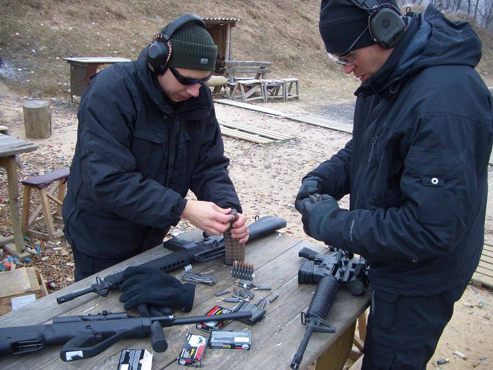 Итак, из чего же сегодня приходится выбирать человеку, который готов добавить в свою жизнь немного огня? Сразу оговоримся — в рамках этого теста мы не уделили внимания причудливым гримасам российского военпрома, оставив их людям без нервов и с руками, привыкшими к напильнику. Среди богатого ассортимента соответствующих отделов оружейных магазинов мы тщательно отобрали только те модели, которые в основе своей имеют крепкие военные корни, радуют самый притязательный взгляд внешним видом и уж точно не поранят руки владельца заусенцами и шероховатостями. С нами на стрельбище отправилась интересная компания в составе британско-американского квинтета от Sabre Defence из четырех XR-15 и одной XR- 41, «немца» Heckler&Koch SL 8, австрийца AUG Z и примкнувшей к ним гладкоствольной парочки Safir Arms Т-14, не скрывающей своего турецкого происхождения.