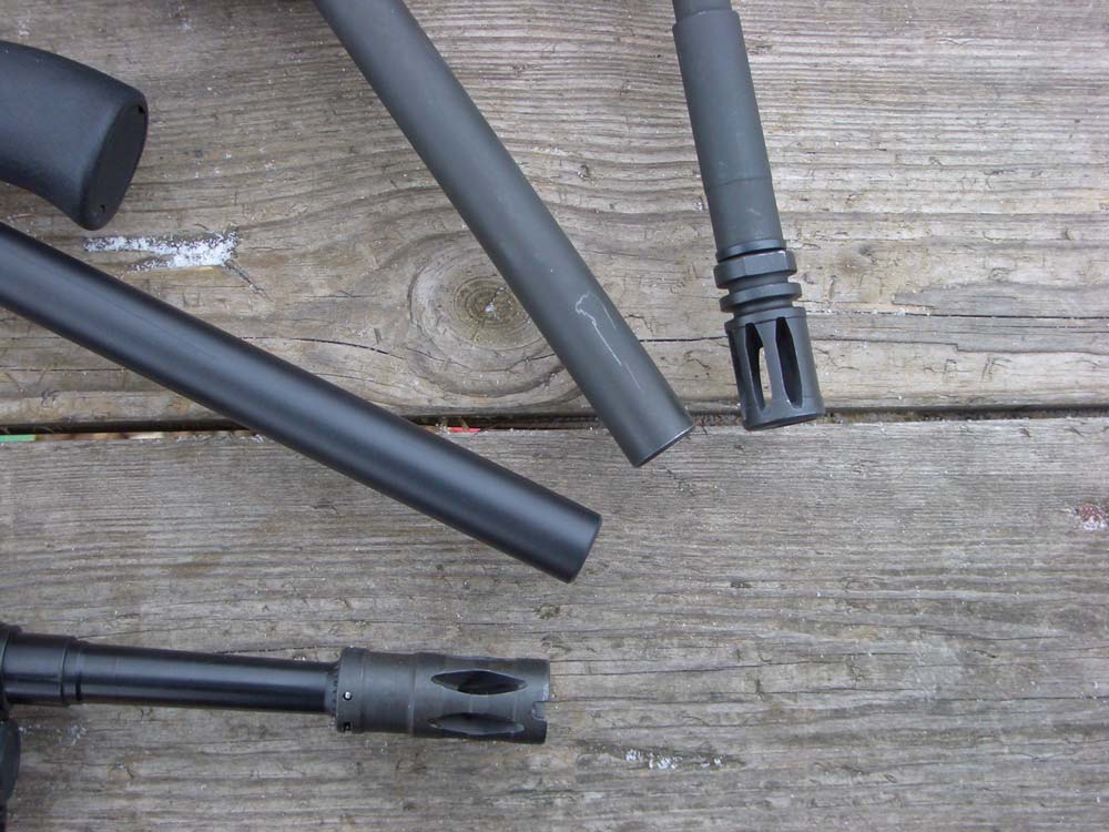 Дульная часть стволов. Слева направо: Sabre Defence XR-41, AUG Z, Heckler&Koch SL-8, Sabre Defence XR-15
