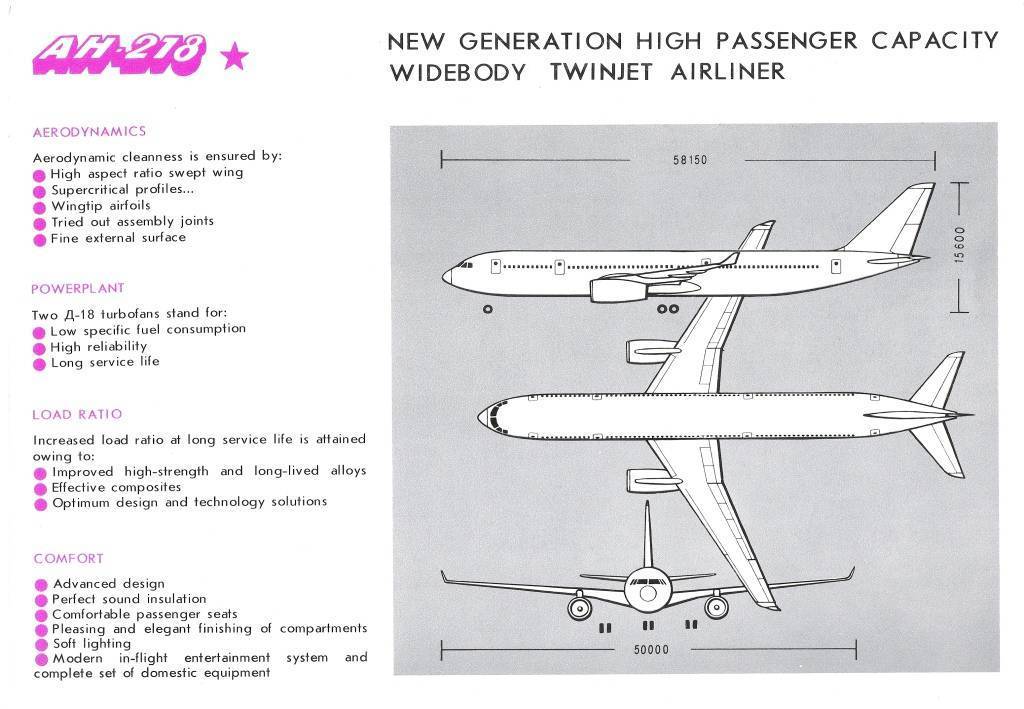 Именно что далеко. Это и интересно Нет смысла столько писать, обсуждая лишь картинку с маркировкой «Ан-218». Ведь, на любом авиа производстве есть очень много разных макетов и идей. Обсуждать столь серьезно их нет смысла. А мы же сейчас говорим о вполне/почти готовом самолете. На бумаге самолет был готов на 90 (85 как говорят другие, но не все ли равно?!) процентов (что касается окончательных чертежей и записок к ним). Был собран макет в реальную (1:1) величину, из дерева. С полноценной компоновкой пассажирских кресел, кабинетов и конечно же кабиной пилотов с рабочими дисплеями (спецэффекты :)). В макет самолета полным ходом водили делегации иностранных заказчиков… Как говорят некоторые очевидцы, работники действительно творчески «горели» этим самолетом. В начале трудных 90-х никто не сомневался, что этот самолет будит в небе. Не так давно они подняли в небо «Мрию». Теперь у них новый, достойный вызов.