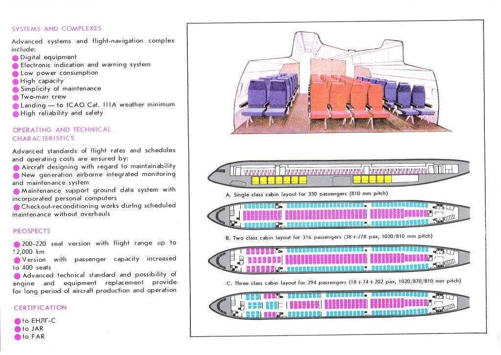 Оборудование: планировалась установка пилотажио-навигационного комплекса, позволяювшего использовать самолет по минимуму категории IIIA ИКАО, планировалось использование высокоавтоматизированной кабины экипажа, система индикации должна была включать шесть электронных индикаторов