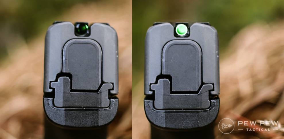 They aren’t perfect though. Since these sit flush in the slide, you tend to have a much more obscured sight picture than with traditional sights. This isn’t a problem when you’re shooting self-defense range targets, but it is a different feeling to the shooter.