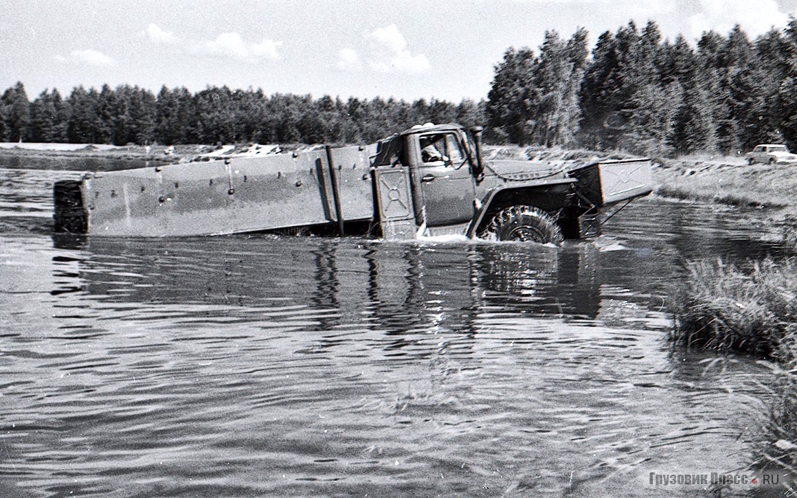 В тактико-техническом задании на разработку автомобиля «Урал-375» было указано требование о преодолении брода глубиной 1800 мм. Как уже рассказано в воспоминаниях А.И. Титкова, предполагалось, что во время преодоления брода максимальной глубины вода могла водителю доходить до горла. Была сделана герметизация не только двигателя и других узлов, но также проведены мероприятия по кабине. Анатолий Иванович рассказал о том, что после такой герметизации на испытаниях по преодолению брода глубиной 1800 мм опытный образец «Урала-375» вдруг… поплыл! Это было для всех совершенно неожиданным обстоятельством. Испытания по преодолению брода проводились на озере, и если бы образец не удалось вовремя зацепить тросом, он мог уплыть достаточно далеко и можно лишь гадать, чем всё закончилось бы…