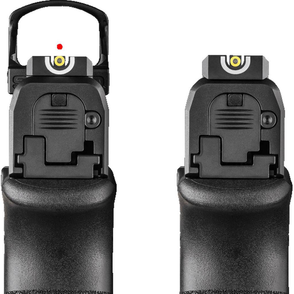 Предложенный в конфигурации для установки прицела, Hellcat OSP имеет крышку, которая снимается, чтобы обеспечить возможность прямой установки микро-коллиматора на затвор для получения максимально низкого профиля.