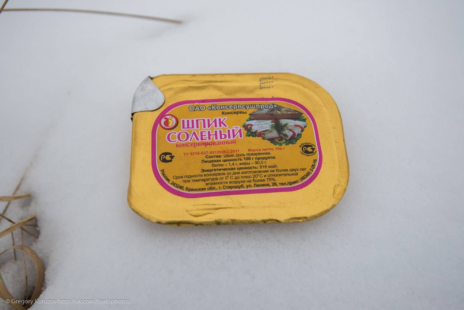 - консервы мясные: паштет, фарш, тушенка, сало, шпик;