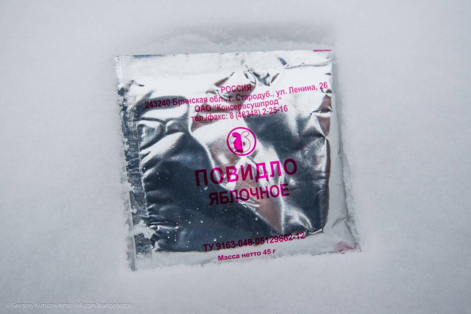 - В комплект не включают быстропортящуюся пищу, чтобы он долго хранился. Овощи, фрукты и мясо попадают в набор в виде тефтель, рагу, джема и повидла.
