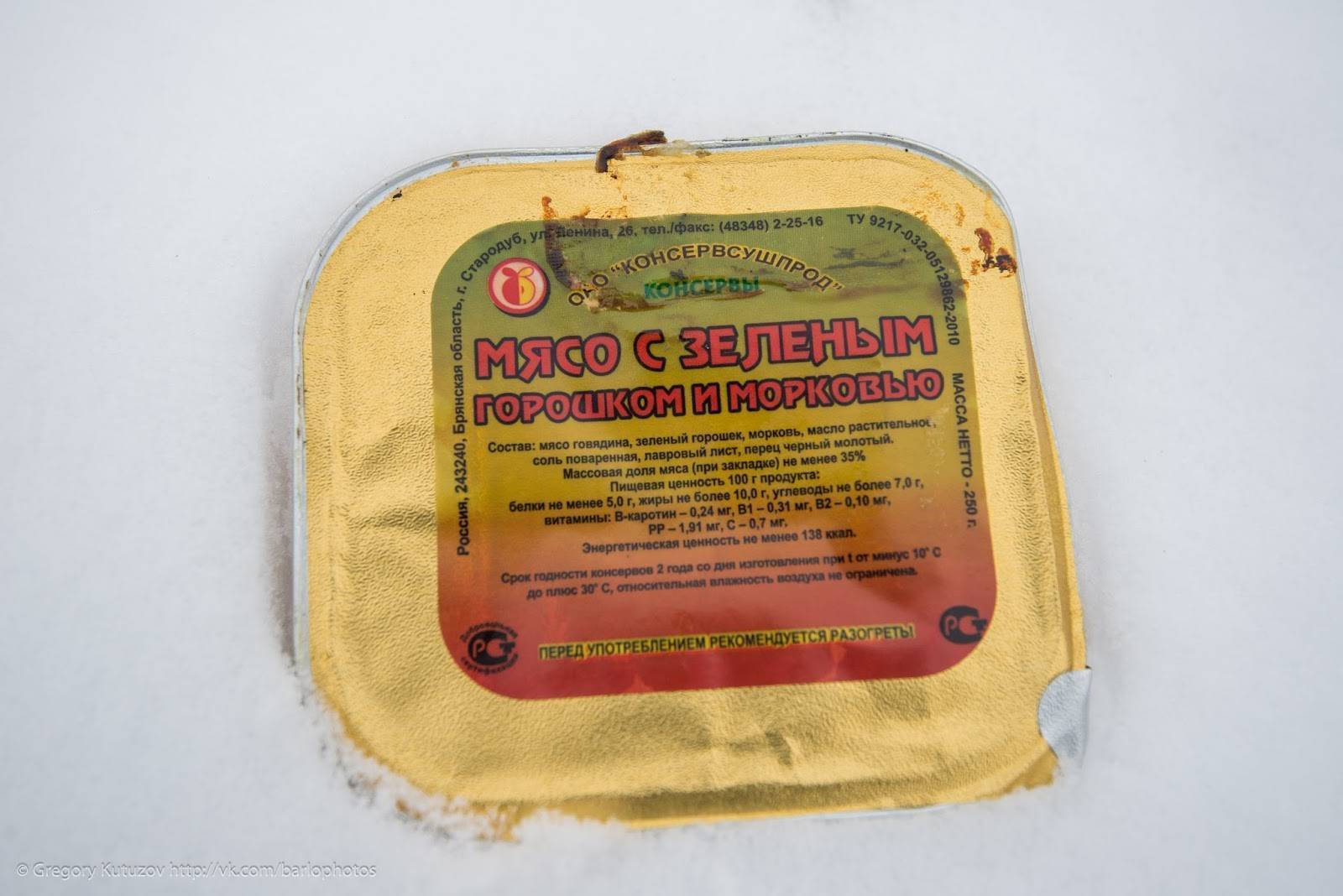 - консервированные блюда, подлежащие разогреву – тушенка с гарниром, овощное рагу, различные крупы с добавлением мяса;