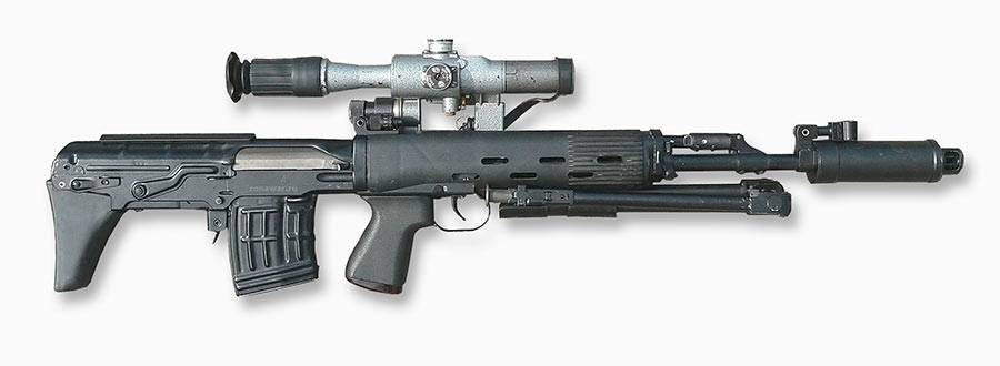 Одну из последних версий СВД Власенко можно опознать по переходнику, который поднимает ось приклада, выравнивая его с осью канала ствола. По магазину знатоки также могут догадаться, что данная модель создана под натовский патрон .308 (7,62 х 51), выпуск которого с успехом освоили наши патронные заводы.