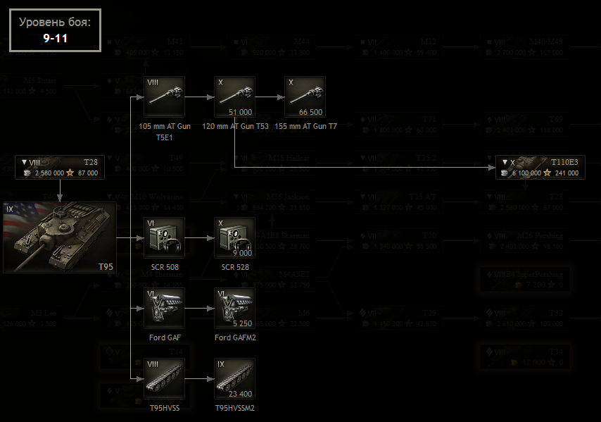 | Средние танки | II T2 Medium Tank • III Convert. Medium Tank T3 • III M2 Medium Tank • IV T6 Medium • IV M3 Lee • V M4 Improved • V M4A2E4 Sherman • V M4A1 Sherman • V Ram II • VI M4A3E8 Fury • VI M4A3E8 Thunderbolt VII • VI M4A3E8 Sherman • VI M4A3E2 Sherman Jumbo • VII T26E3 Eagle 7 • VII T20 • VII T23E3 • VIII T25 Pilot Number 1 • VIII TL-1 LPC • VIII T42 • VIII ASTRON Rex 105 mm • VIII AMBT • VIII M46 Patton KR • VIII M26 Pershing • VIII T26E4 SuperPershing • VIII T69 • VIII T95E2 • IX M46 Patton • X M48A5 Patton • X M60 • X T95E6 |