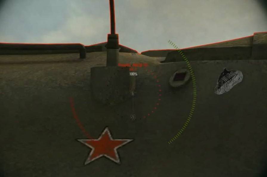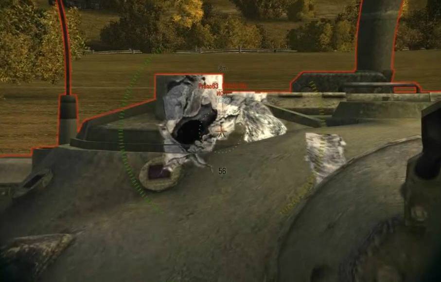 Так же не стоит стрелять в бронеплиту располагающуюся к нам под прямым углом, хотя и заявлено, что там толщина брони 150 мм и при выстреле мы видим характерный след пробития, а урон танку не наносит – это признак того, что у танка есть экранная броня.