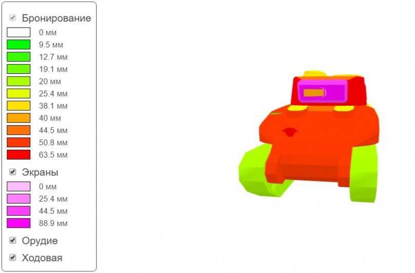 Углы наклона лобового листа брони танка – 68⁰. Борта корпуса — вертикальные, из брони толщиной 70-80мм, частично закрытые элементами ходовой части.