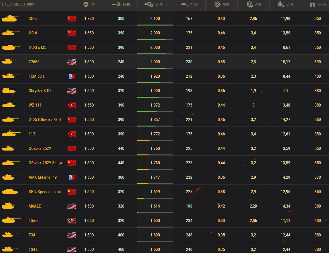 И если для маневренных средних танков такое вооружение подходит как нельзя лучше, то для тяжелого танка, альфа страйк хотелось бы выше, а так — самый низкий среди всех ТТ-8.