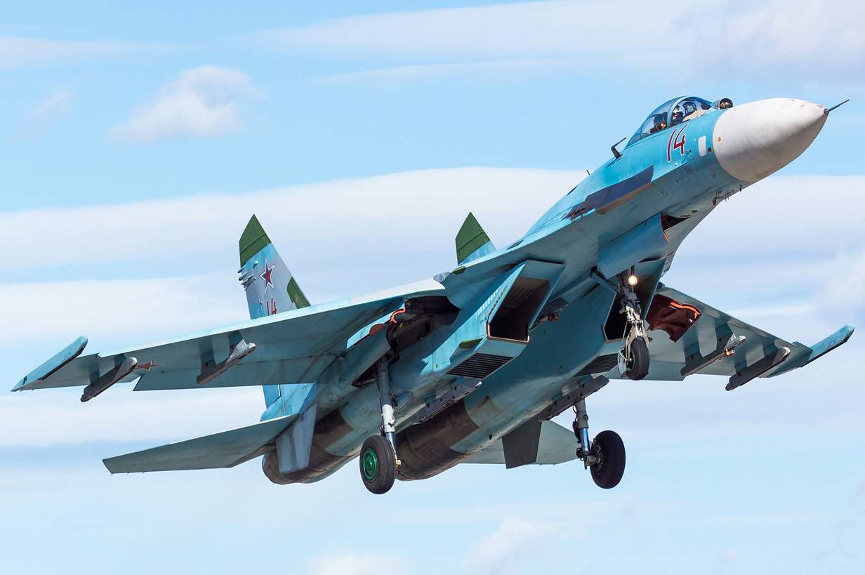 Су-33 — палубный истребитель поколения 4++. Несколько таких самолётов находятся на вооружении авианосца «Адмирал Кузнецов».