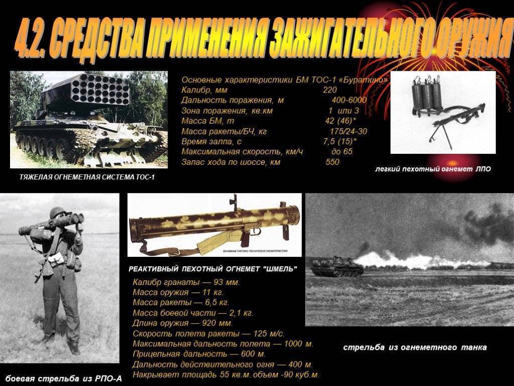 | Масса огнемета, кг | 12,6 | 11 | 8,8 |