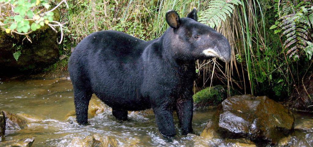 Чтобы поддерживать водно-солевой баланс и нейтрализовать яды из ядовитых растений горные тапиры пьют воду из минеральных источников и облизывают минералы.