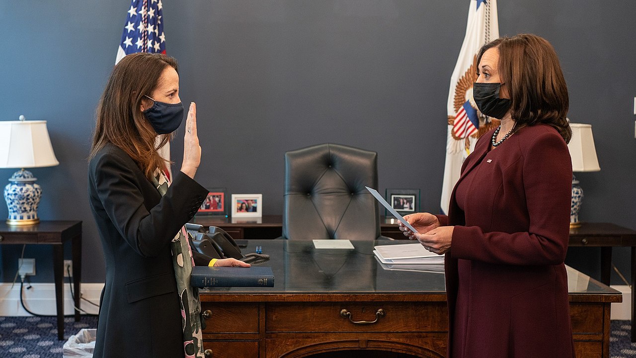 Эврил Хэйнс приводится к присяге в качестве директора Национальной разведки вице-президентом Камалой Харрис 21 января 2021 года.