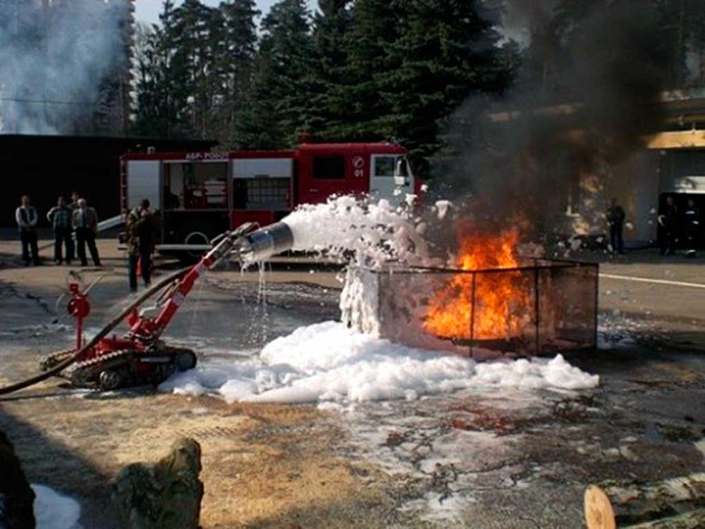 - подача в очаг возгорания воздушно-механической пены низкой кратности от АБР-РОБОТ через 50-ти метровую катушку по рукаву высокого давления или пены высокой кратности через пожарный рукав с использованием генератора пены высокой кратности (ГВП), закрепленного на манипуляторе МРК-РП;
