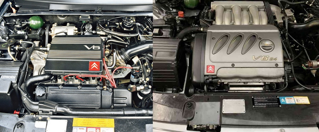 Два двигателя 3.0 V6 Citroёn XM: слева ранний ZPJ 190 л.с., справа поздний ES9J4 194 л.с. Был ещё третий «промежуточный» ZPJ4 200 л.с.