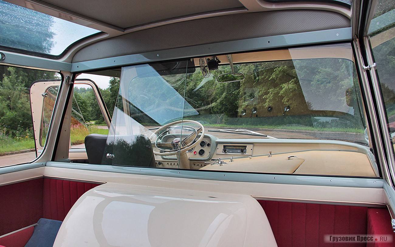 сдвижная стеклянная перегородка. Щиток приборов и руль были заимствованы у ЗИЛ-111. Общая высота салона способствовала