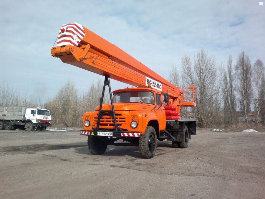 Например, гидравлический подъемник АГП-22 на базе автомобиля ЗИЛ-130 предназначен для подъема на высоту до 22 м двух рабочих с материалами и инструментами при выполнении монтажных или ремонтных работ.