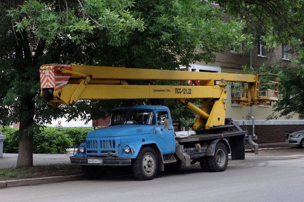 ЗИЛ-431410 с установленным подъемником ПСС-121.22, поднимающим людей с материалом и инструментом на высоту до 22 метров для выполнения строительно-монтажных и электротехнических работ